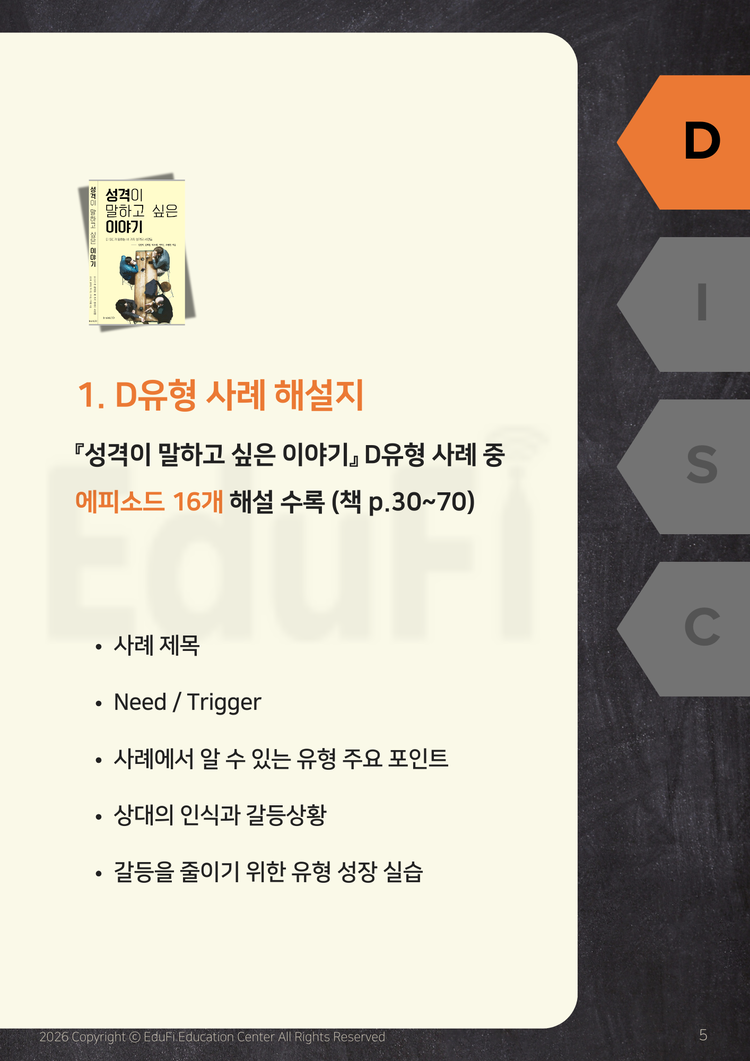 성격이 말하고 싶은 이야기 (DISC가 말하는 네 가지 성격의 사연들) 사례 해설지 (총 44p)SALEMD